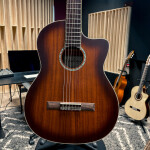The Cordoba C4?CE is a versatile full-size nylon-string classical guitar that pairs traditional Spanish design with modern play-friendly features. It sports a solid African mahogany top with matching mahogany back and sides, delivering a warm, clear, and balanced tone well suited for both fingerstyle and strummed playing. A soft cutaway and a slightly thinner, comfortable neck profile make upper-register access easier, while premium aesthetic touches like maple binding and an abalone rosette give it a refined look. Onboard Fishman electronics with soundhole-mounted controls let you plug in for performance or recording without losing the natural nylon-string voice. Overall, the C4-CE is a compelling choice for players seeking a quality acoustic-electric classical guitar with strong unplugged tone and reliable amplified performance.